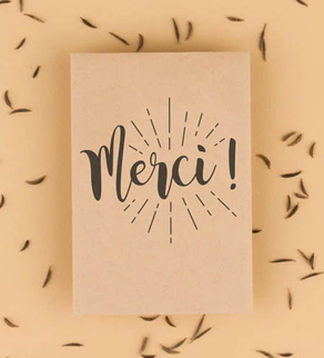 Nous l’écrivons à la main, avant de le glisser dans ta box cadeau, comme si c’est toi qui l’avais écrit.