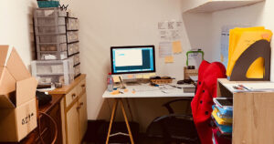 J’installe mon petit bureau dans la buanderie juste à côté du garage et c’est parti !