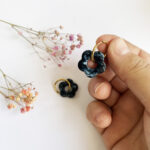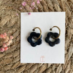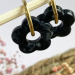 De jolies boucles d’oreilles alliant fleur noire et anneau doré, en acier, pour ta mère, ta soeur, ta copine, ta BFF ! Et pour donner un petit côté « relief », des effets « fumées » sont directement inclus dans la résine des fleurs noires.