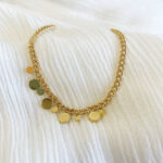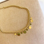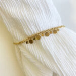 Ce bracelet doré sera un intemportel de votre garde-robe. Délicatement ornés de petites breloques rondes suspendus au centre du bracelet, il habillera votre poignet avec délicatesse.