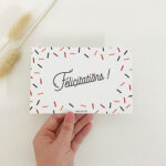 Pour un mariage, une naissance, une crémaillière, une prouesse professionnelle ou l’obtemption d’un dipôme, la carte félicitations est la carte à ajouter dans sa Box cadeauen toutes circonstances !