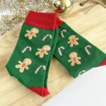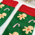 Difficile de faire plus « esprit de Noël;l » que ces chaussettes vertes et rouges décorées de petits bonshommes en pain d’épices et de sucre d’orge ?