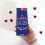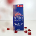 70 grammes de délicieux coeur gélifiés à la framboise avec un packaging humoristique « Les calories sont des petites bêbêtes qui rétrécisent les vêtements pendant la nuit »