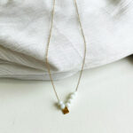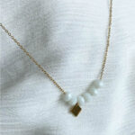Notre collier Simone en acier inoxydable, avec ses jolies perles blanches facettées et sa breloque doré vont donner un look estival à toutes vos tenues !