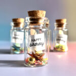 Cette fiole « Happy Birthday » est une petite attention pleine de charme pour souhaiter un joyeux anniversaire autrement. à l’intérieur, un mélange de sequins, éléments brillants, étoiles et une mini bougie qui donnent immédiatement le sourire.