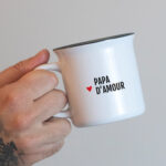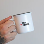 Papa d’amour. Est ce que c’est possible d’avoir un message d’amour plus simple et plus efficace ? Je ne crois pas.Offrez ce mug papa d’amour ou faites le vous offrir, il vous mettra du baume au coeur dès le petit déjeuner !