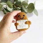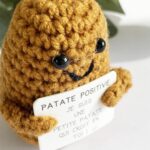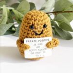 On a totalement craqué sur cette petite patate en crochet ! Avec sa petite pancarte « je suis une petite patate qui croit en toi » bien calé entre ses bras, car oui, notre petite patate positive a 2 bras, elle enverra des ondes positives à celui ou celle à qui elle sera offerte ! Elle sera rassurante, pour ceux qui ont besoin d’un petit coup de pouce, amusante pour ceux qui la garderont près d’eux, au bureau ou même à la maison ! Nous on a déjà adopté la nôtre et elle trône fiérement sur notre bureau, à côté de notre zizi anti-stress ! Ils font la paire ces deux-là !