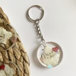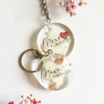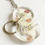 Porte clé » Mère-veilleuse » en résine époxy avec ses fleurs séchées et ses pailettes (motif random, fait main !), fabriqué à la main par la marque FrançaiseFloraisine.