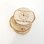 Les sous-verres sont gravés sur du bois de bouleau par Pat & Manon