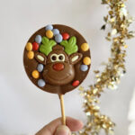 Sucette ronde "Renne de Noël" en chocolat au lait et smarties